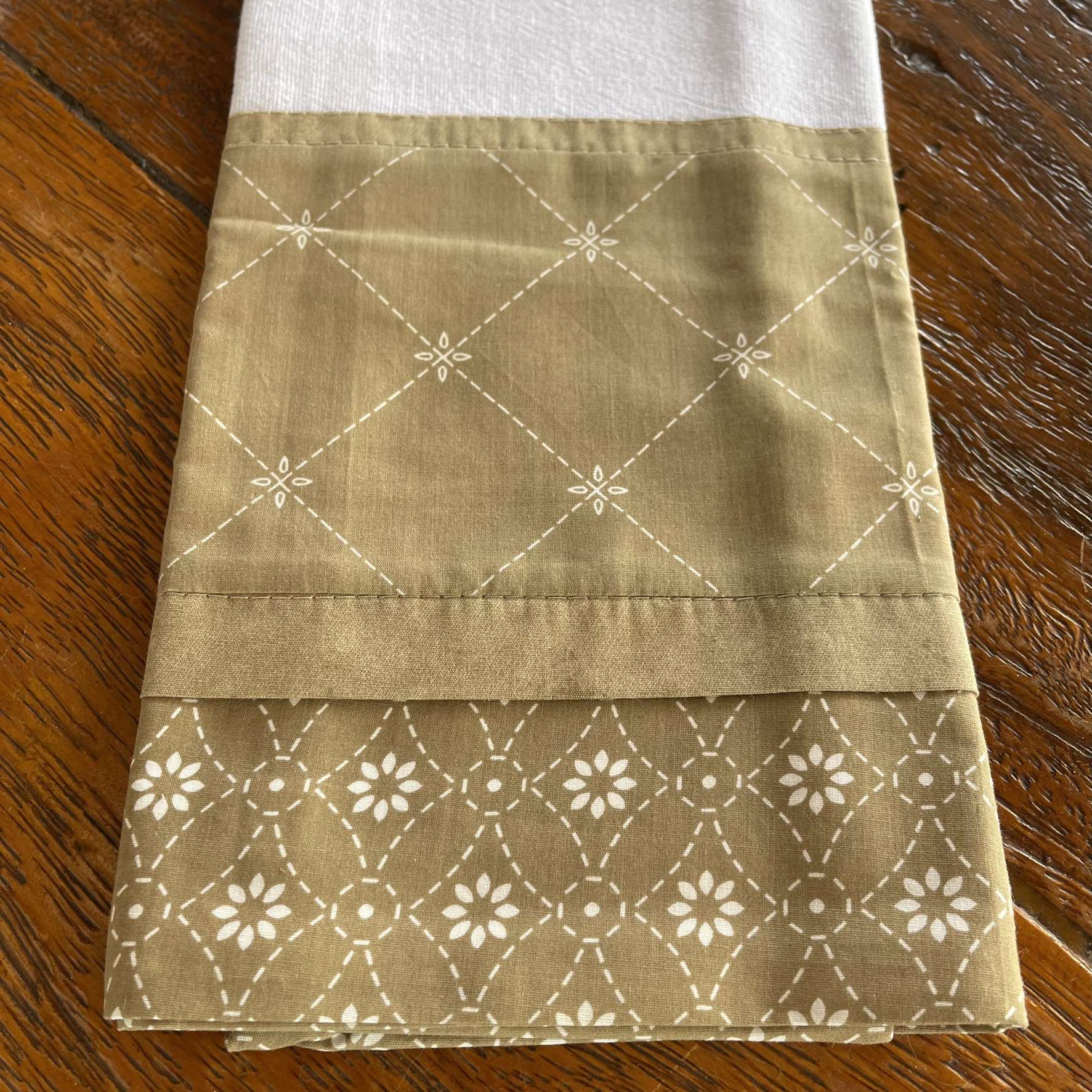 Pano de prato geométrico e floral bege